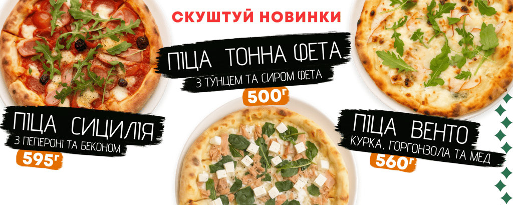 Тісто на заквасці, томатна основа, сир моцарела, шинка, бекон, копчена курка, томати, солодкий перець, сир пармезанВага: 610г, Ø28см